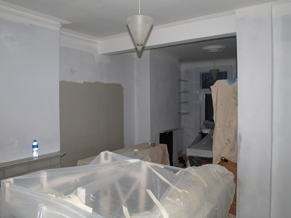 Pre decorating preparation prior to decorating. Floors and furnishing are always protected throughout